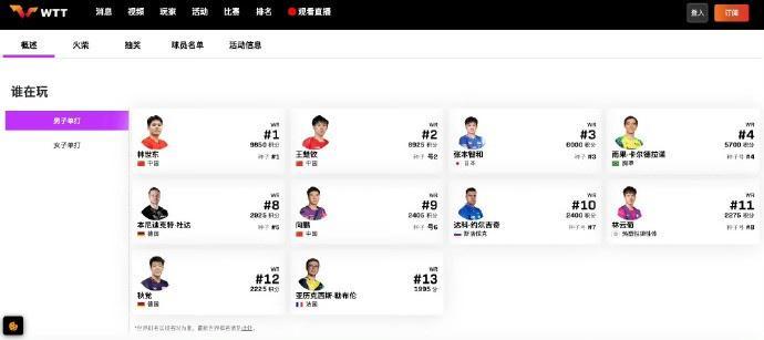 直播吧9月6日讯 2025WTT中国澳门冠军赛国乒参赛名单更新,梁靖崑因伤退赛,法国人泊雷特递补参赛。国乒最新参赛名单:男单:林诗栋、王楚钦、向鹏、陈垣宇、黄友政女单:孙颖莎、王曼昱、陈幸同、蒯曼、王艺迪、陈熠 ​​​...